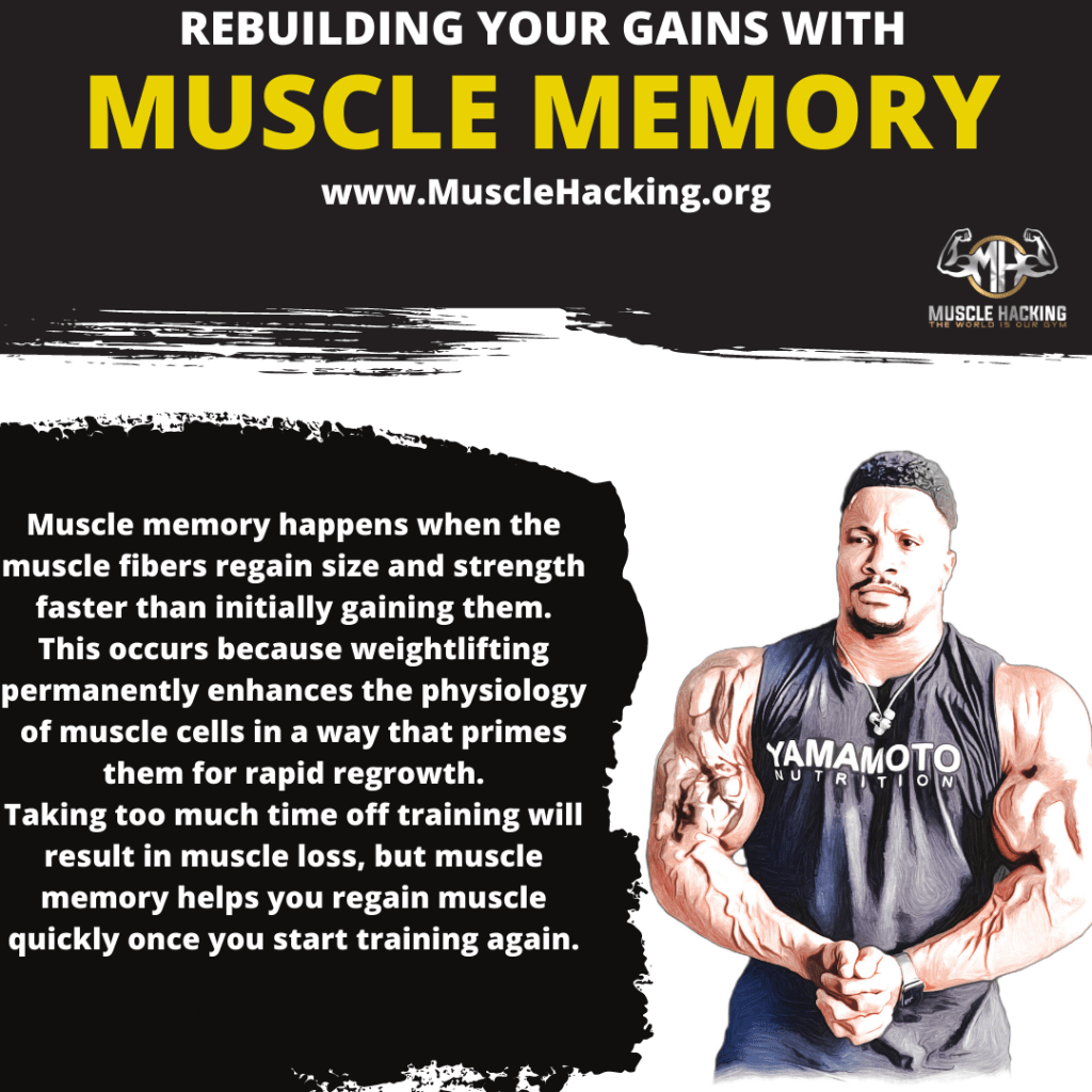 🔹 This means that when we start back working out, we’ll be able to regain a good number of muscle fibers, and still apply high amounts of force, compared to when we previously started training.. which will allow muscle regrowth to happen at a much faster rate.