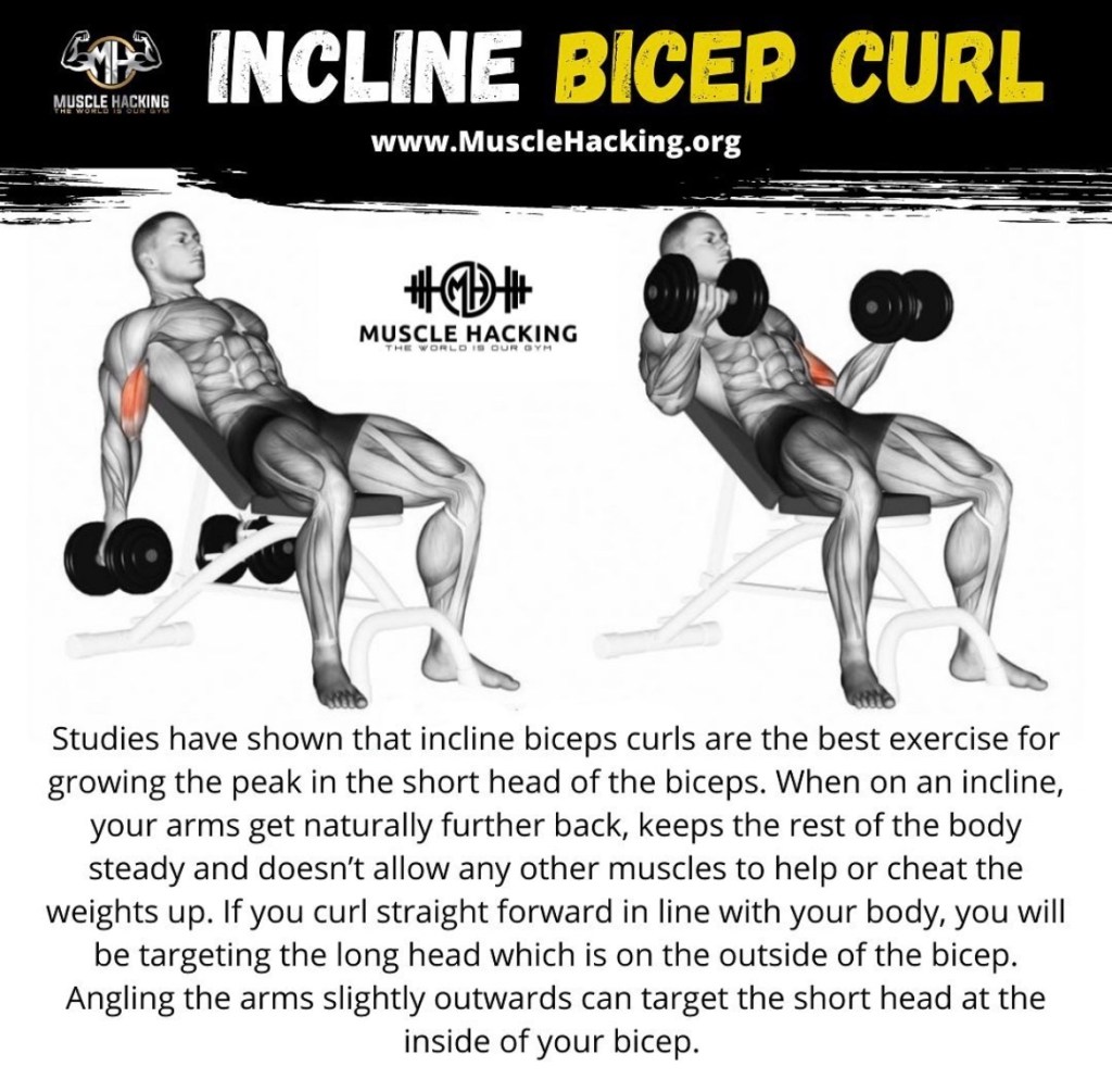 ▪️Studies have shown that incline biceps curls are the best exercise for growing the peak in the short head of the biceps.