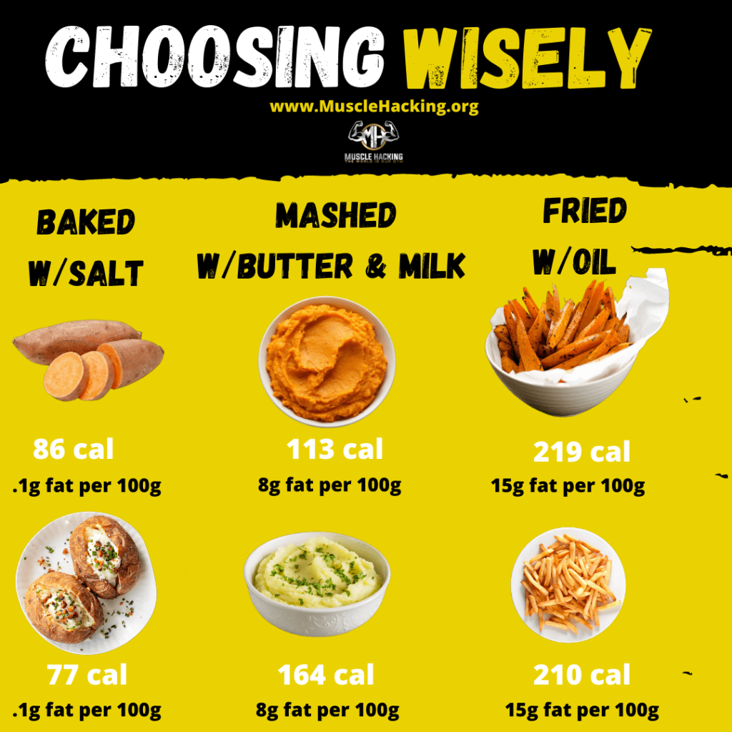 ▪️Ultimately, in order to lower your body fat percentage, you need to be in a calorie deficit. When you are focusing on calorie awareness while choosing potatoes; aim for the lower caloric option such as steamed potato or the variation without any cooking additives.