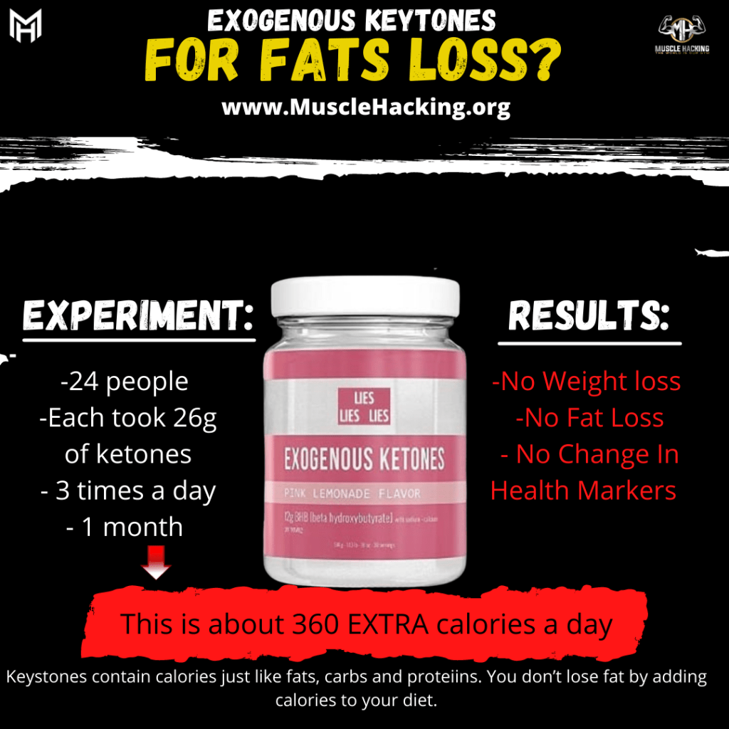 In the study above, the ketones added 360 calories…that’s a small meal. ⠀⠀⠀⠀⠀⠀⠀⠀⠀ THE RESULTS: ❌No weight loss ❌No fat Loss ❌No changes in any health markers (so at least they’re safe) ⠀⠀⠀⠀⠀⠀⠀⠀⠀ Unfortunately the study didn’t provide any information on food intake or activity levels to explain why participants didn’t gain weight. ⠀⠀⠀⠀⠀⠀⠀⠀⠀ Ketone supplements DO NOT HELP FAT LOSS because they skip the calorie reducing effect of ketogenic diets. ⠀⠀⠀⠀⠀⠀⠀⠀⠀ If fat loss is your goal, forget about supplements and focus on a healthy diet and lifestyle changes ⠀⠀⠀⠀⠀⠀⠀⠀⠀ They may have other benefits to ketones potentially but if you buy them for fat loss. Don’t waste your money. ⠀⠀⠀⠀⠀⠀⠀⠀⠀ ⠀⠀⠀⠀⠀⠀⠀⠀⠀ Reference: Soto-Mota et al. (2019). Safety and tolerability of sustained exogenous ketosis using ketone monoester drinks for 28 days in healthy adults