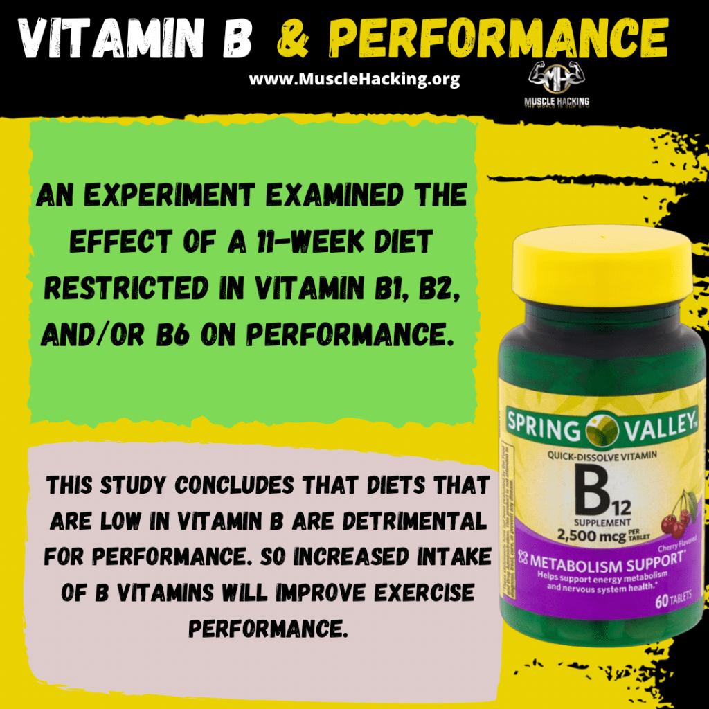 This study concludes that diets that are low in vitamin B are detrimental for performance. So increased intake of B vitamins will improve exercise performance.